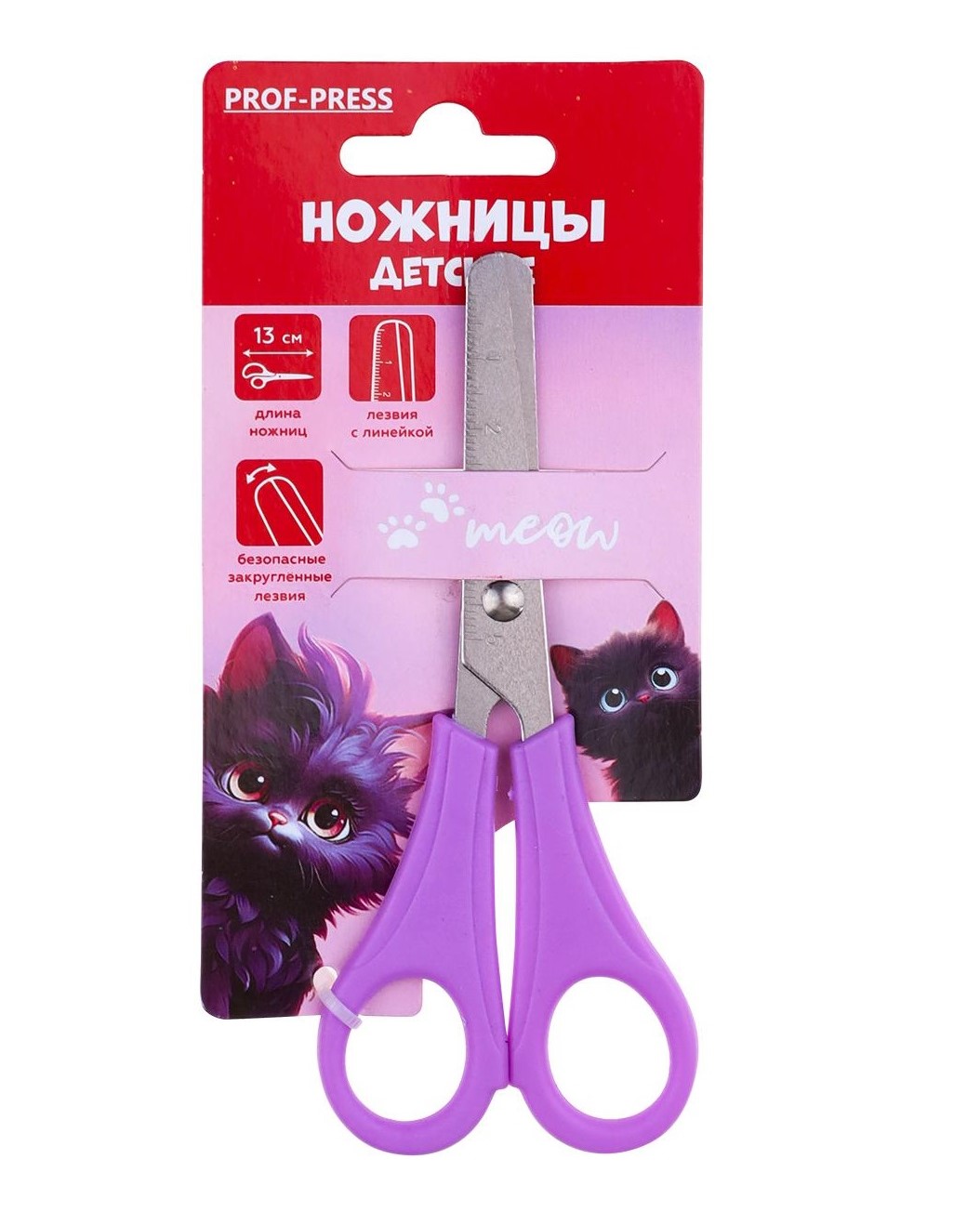 Ножницы детские 13 см. ЧЕРНЫЙ КОТИК, пластиковые кольца /Китайская Народная Республика/