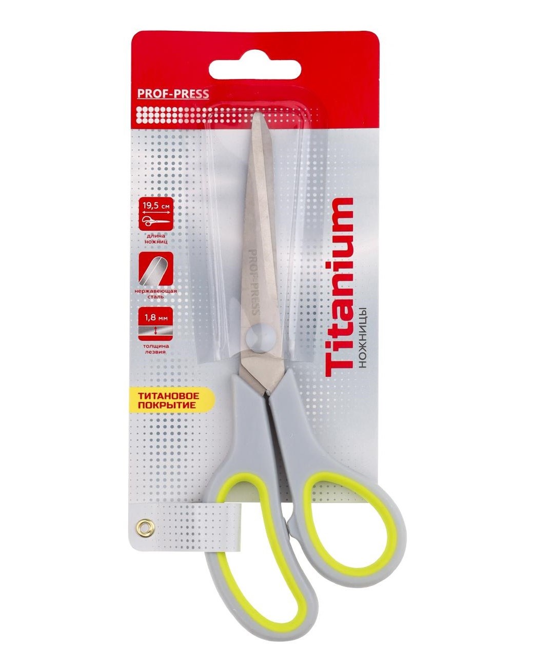 Ножницы канцелярские 19,5 см, титан. лезв., двухцв. прорезин. кольца /Китайская Народная Республика/