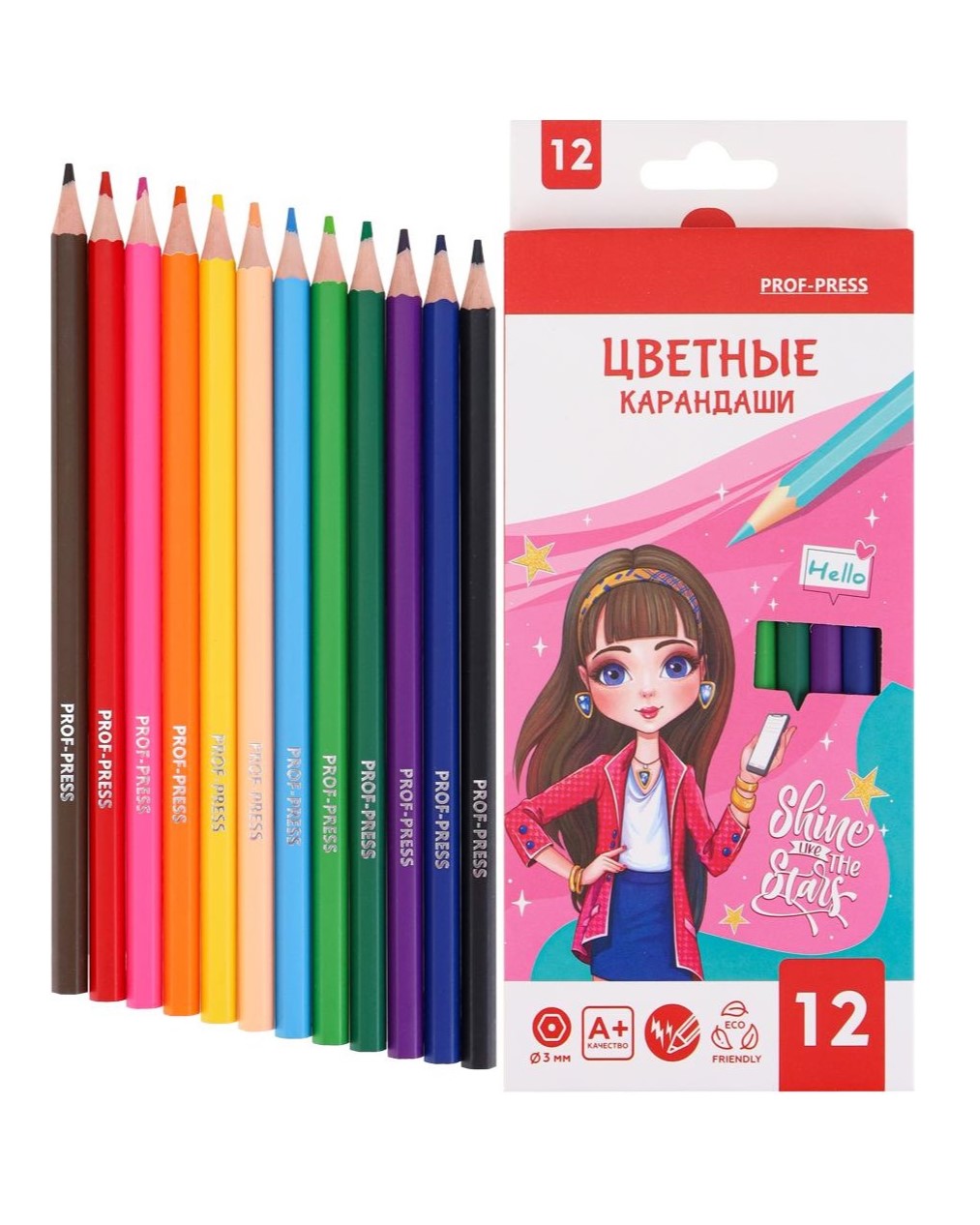 Карандаши цв. пластик.2М, набор 12цв, гексаг. БУДЬ ЗВЕЗДОЙ, гриф.d=3мм /Китайская Народная Республика/