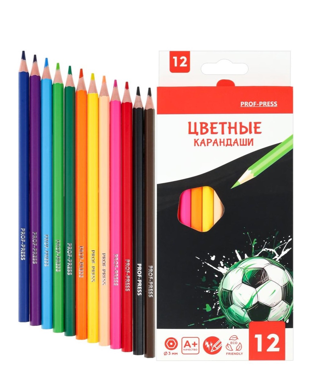 Карандаши цветн пластик.2М,набор,гексаг. 12цв. МЯЧ НА ЧЕРНОМ (КЦ-4715) гриф.d=3мм,2М,в к/к,кр 12 /Китайская Народная Республика/