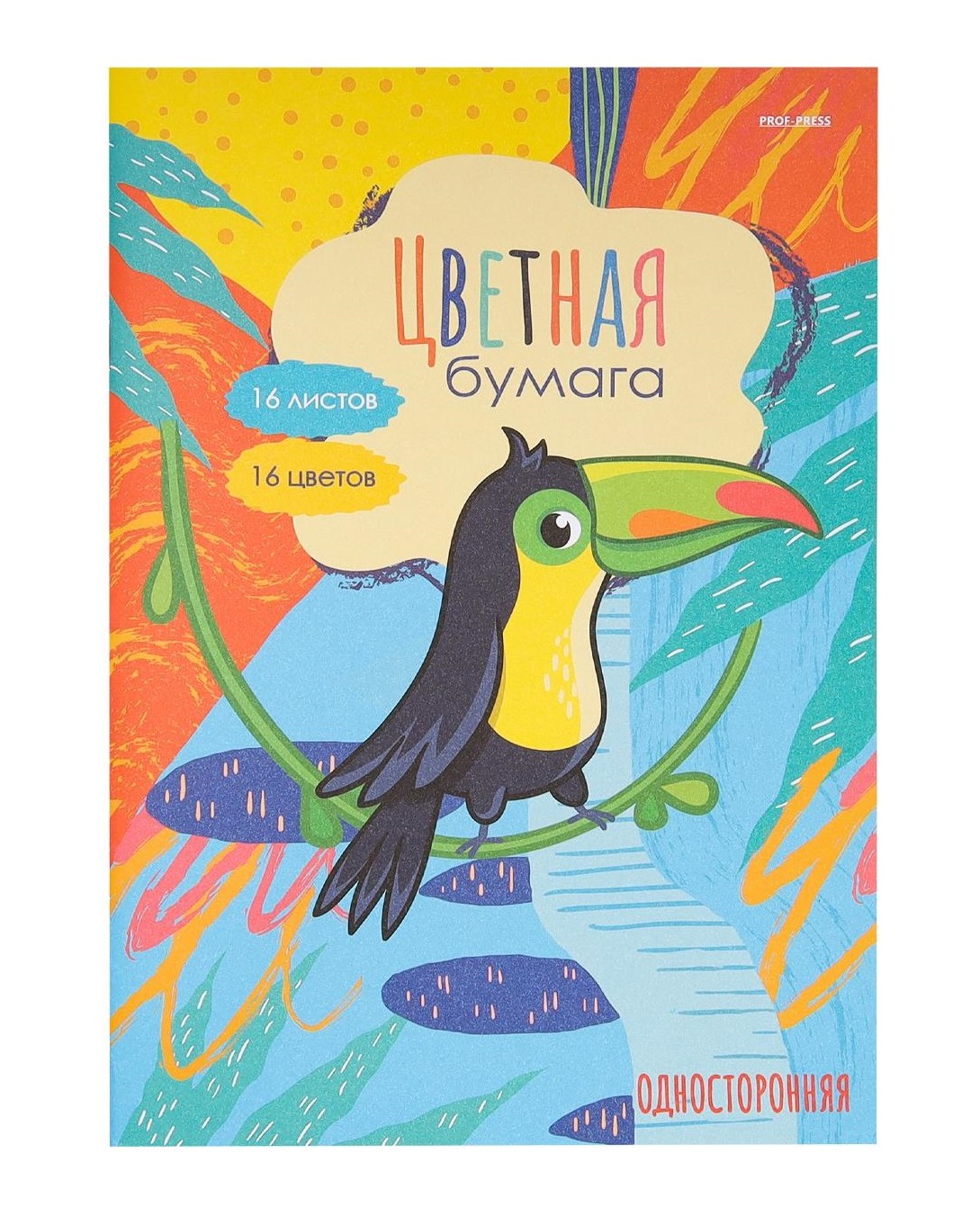 НАБОР ДЛЯ ДЕТ.ТВОР. Бумага цветная 16л. односторонняя А4 ТРОПИЧЕСКАЯ ПТИЧКА 16л.,16цв. /РОССИЯ/