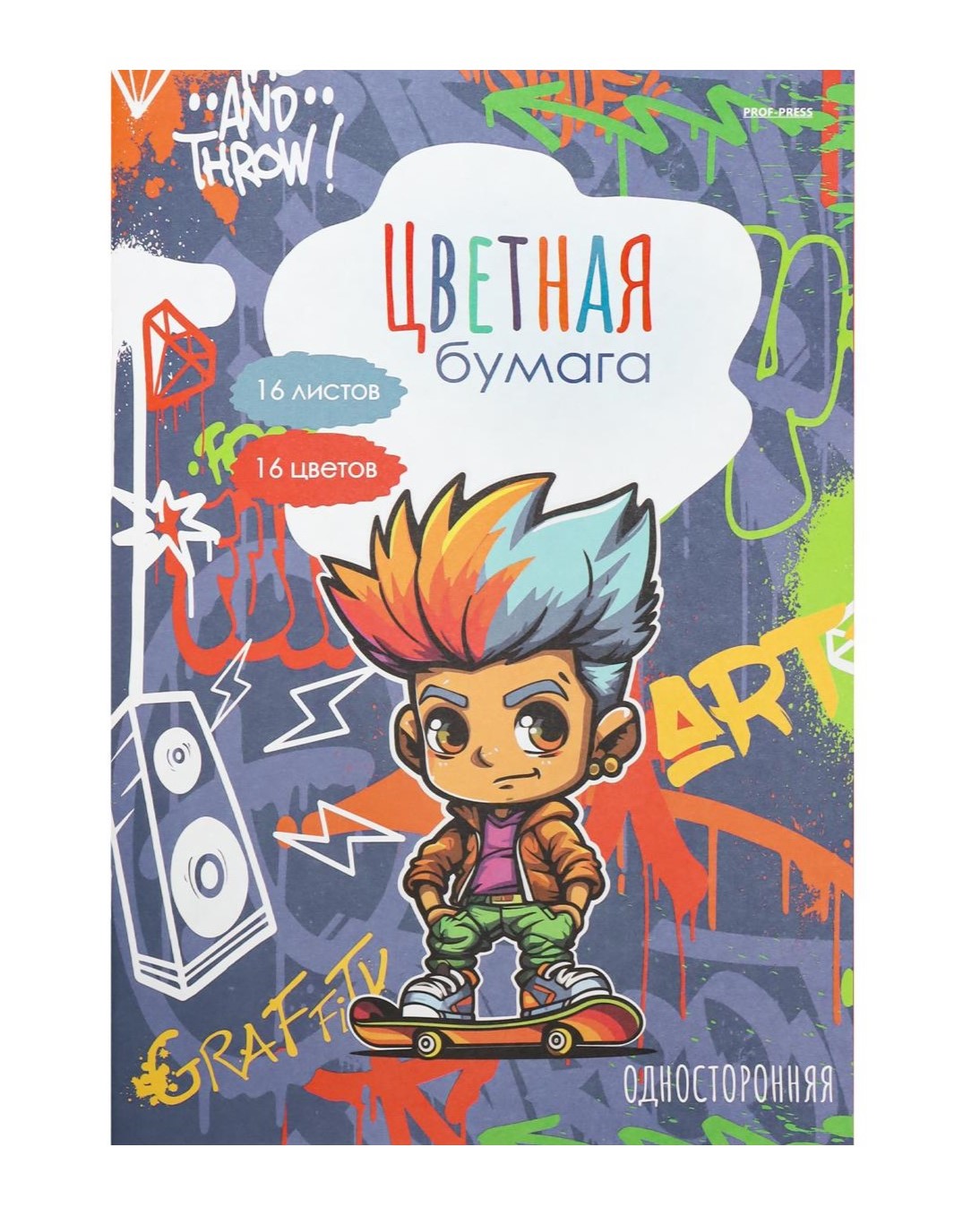 НАБОР ДЛЯ ДЕТ.ТВОР. Бумага цветная 16л. односторонняя А4 УРБАНИЗМ И ГРАФФИТИ 16л.,16цв. /РОССИЯ/