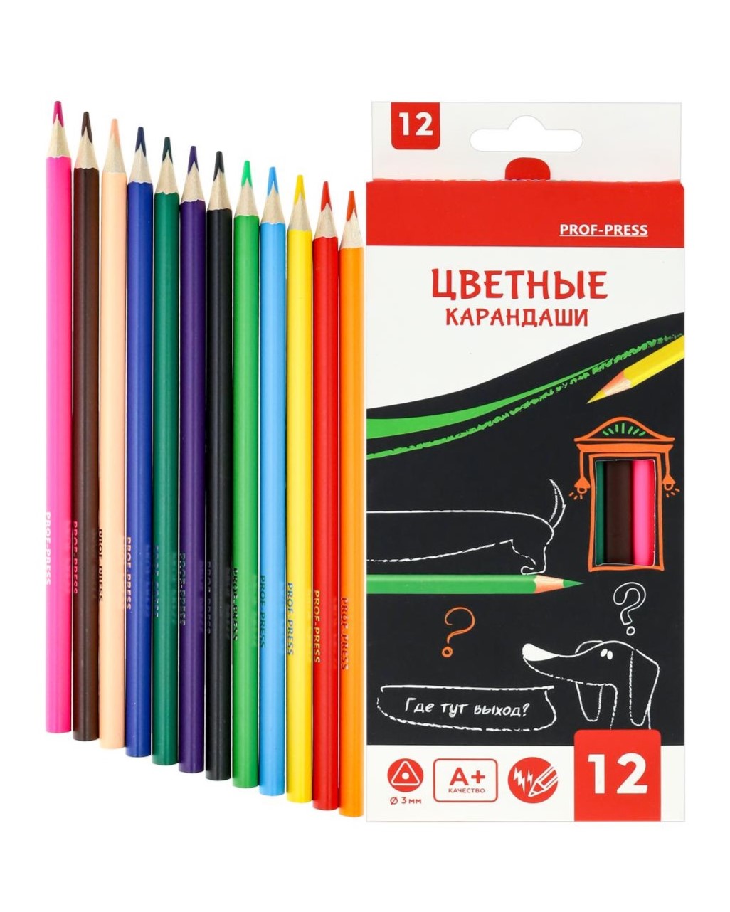Карандаши цветные трехгранные 12цв. ГДЕ ТУТ ВЫХОД? (КЦ-4729) гриф.d=3мм,в к/к. крат12 /Китайская Народная Республика/