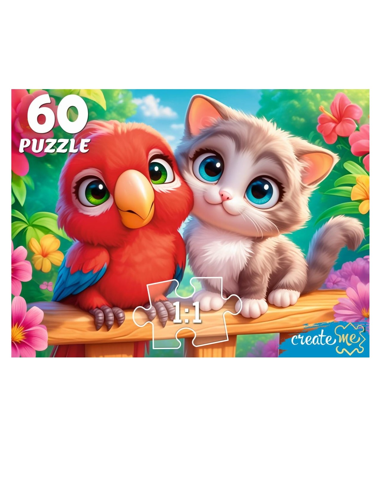 ПАЗЛЫ 60 элементов. КОТЁНОК И ПОПУГАЙ /РОССИЯ/