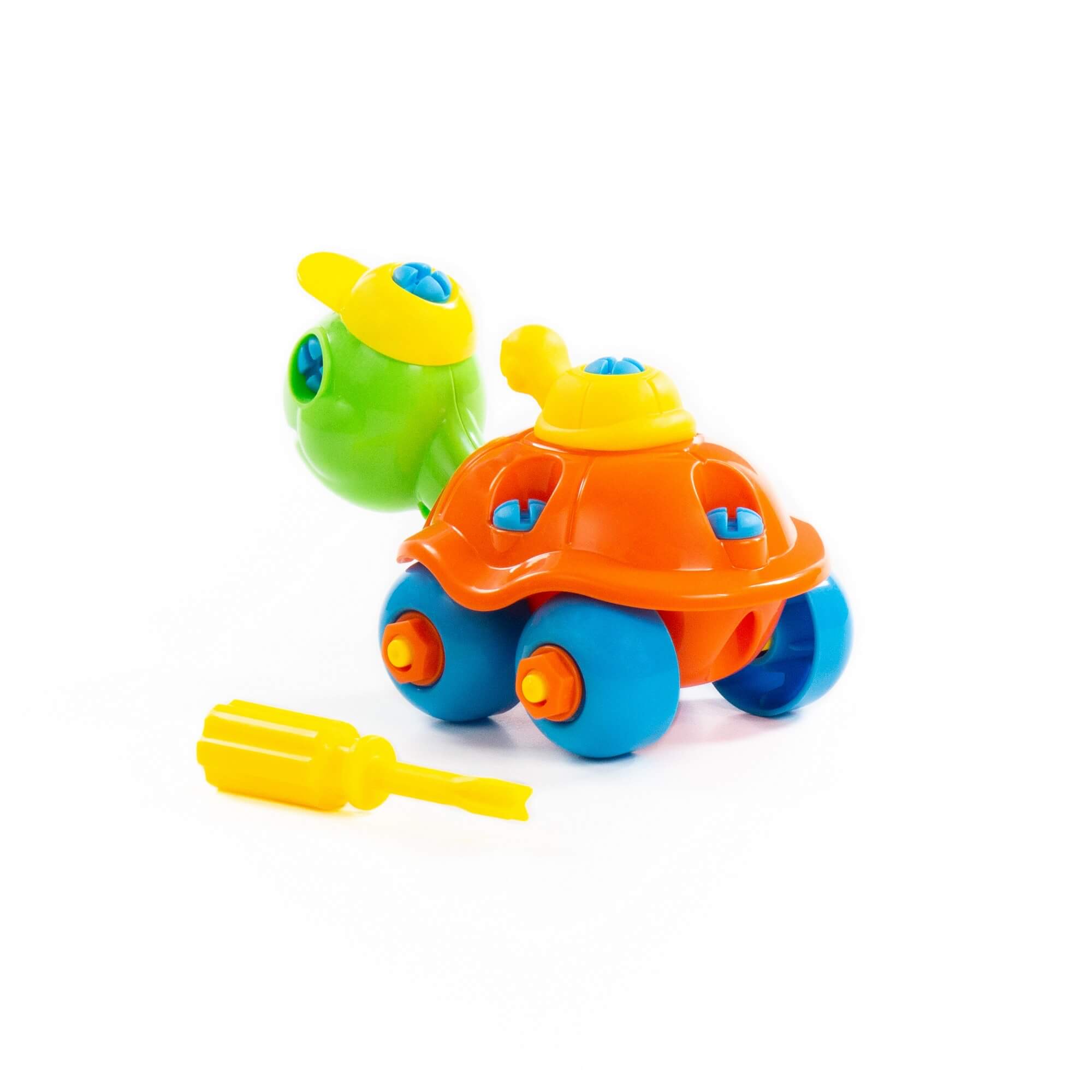 С помощью конструктора «Черепашка» ребёнок не просто знакомится с миром животных, а может многократно собирать и разбирать игрушку по элементам. Для этого в наборе предусмотрена специальная отвёртка. Игрушка на колёсах, поэтому ей можно играть как машинкой. Такой конструктор прекрасно подходит для воспитания малыша: ребёнок изучает цвета и формы, у него развиваются усидчивость, логическое мышление, мелкая моторика рук и координация движений.